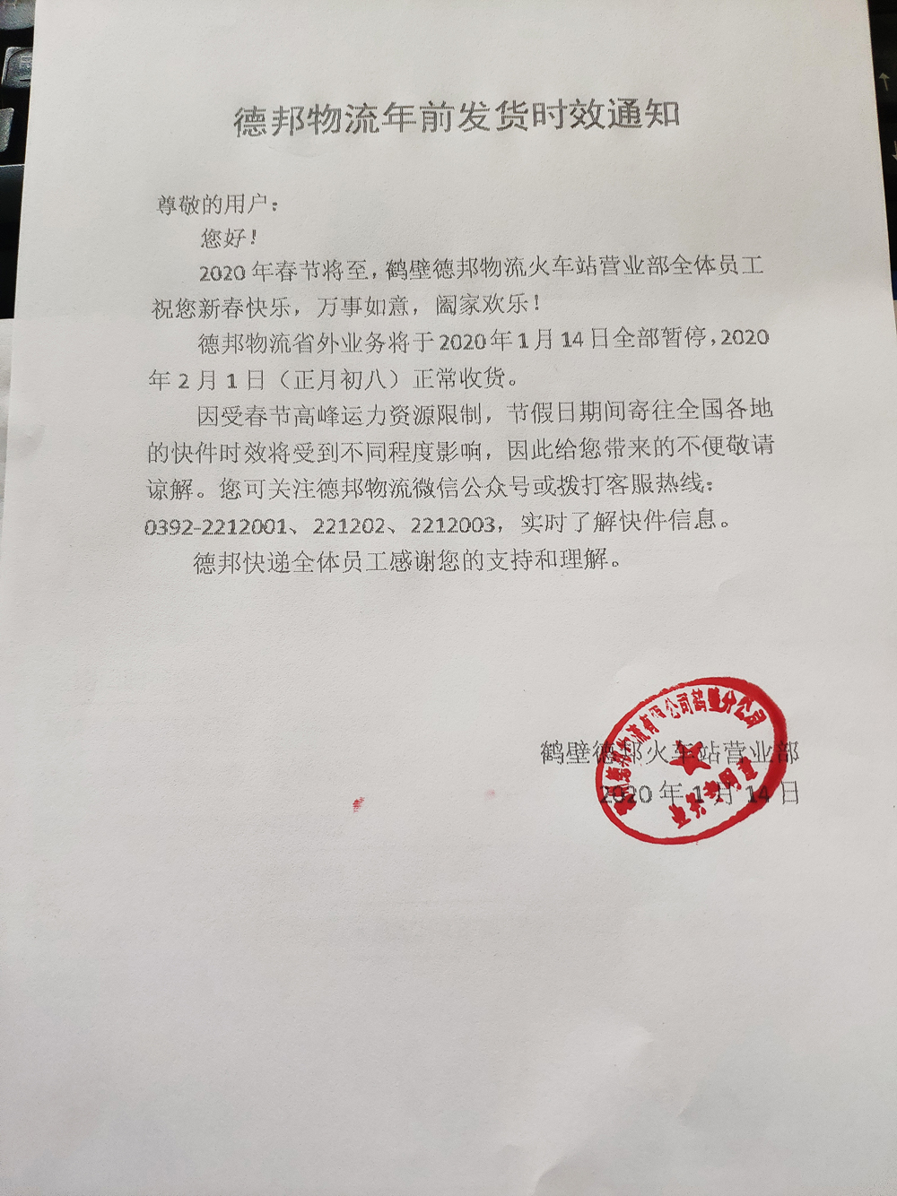 2020年春節即將到來,請各位客戶結合實際情況,合理安排訂貨時間。