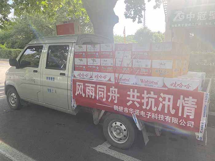 7月27日,鶴壁市華諾電子科技有限公司載著滿車的物資、載著鶴壁華諾廣大員工對災(zāi)區(qū)群眾的牽掛,赴浚縣災(zāi)情一線捐助礦泉水、方便面、電風(fēng)扇等急需物資,以實際行動為鶴壁抗汛防洪工作貢獻一份綿薄之力。