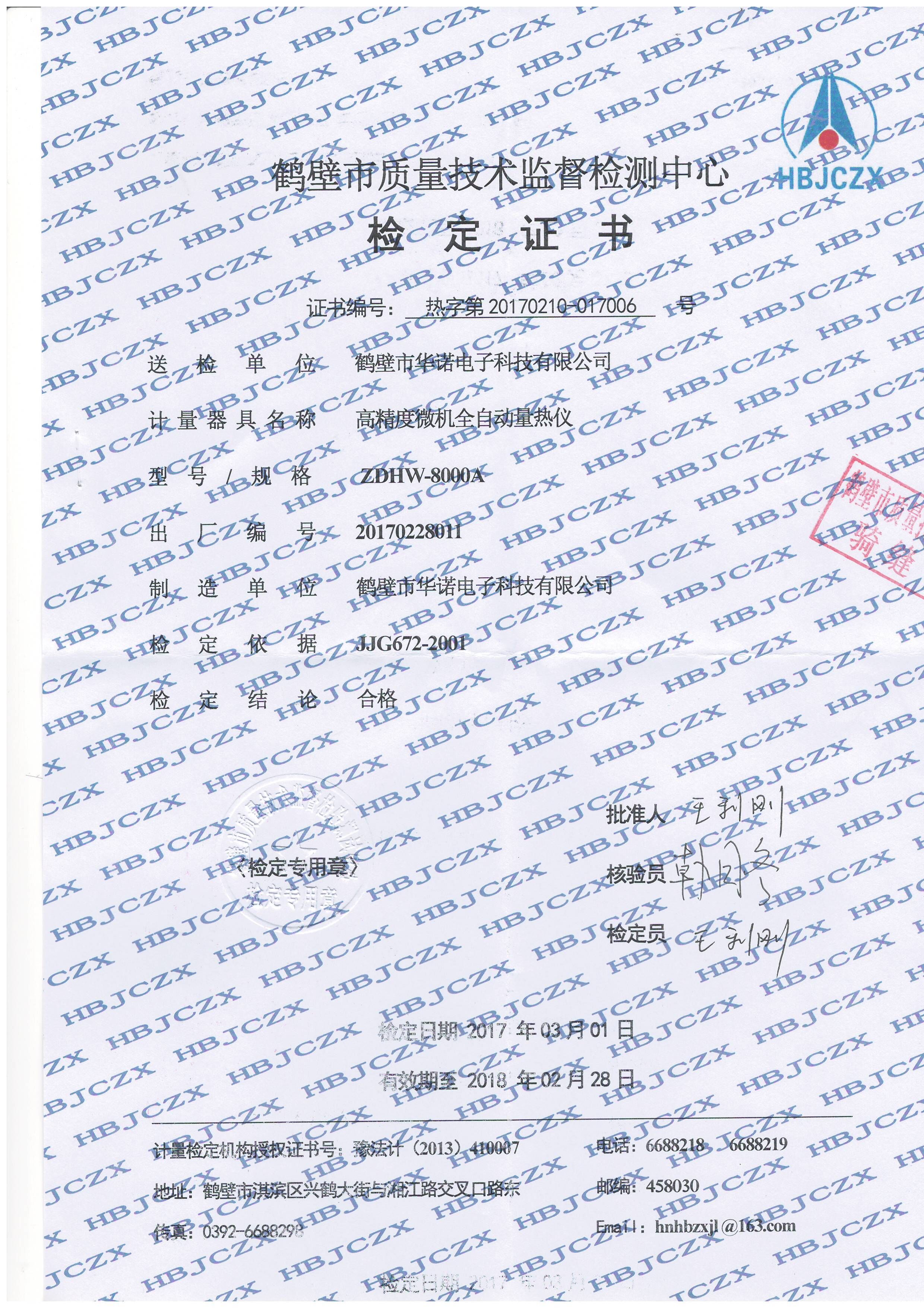 鶴壁華諾量熱儀的“身份證”