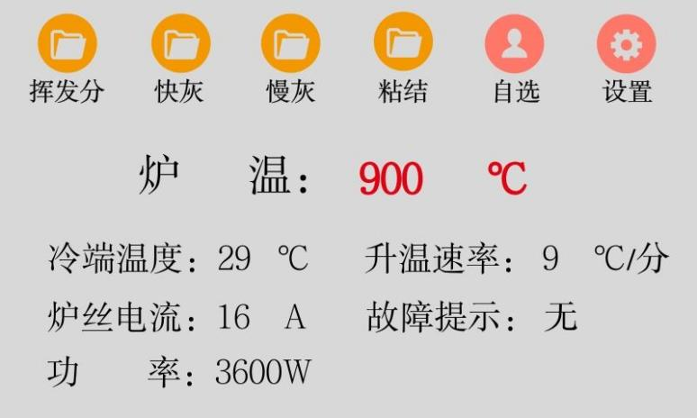 灰揮測定儀主界面有實驗及設置等6個選項、4個實驗按鈕(按照國標GB/T212-2008自動完成慢灰、快灰、粘結指數、揮發份等灼燒測定)、1個自選實驗功能(需求溫度和恒溫時間可以任意設定)、1個設置選項(所有可設置的參數和功能),下面鶴壁華諾煤檢儀器小編為大家分享JN-800A高效節能智能測定儀“慢灰實驗”操作步驟。